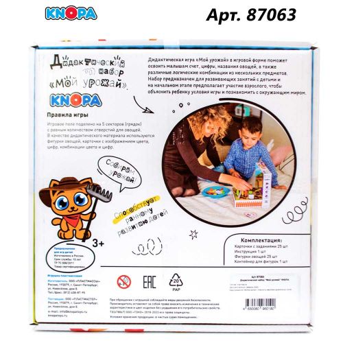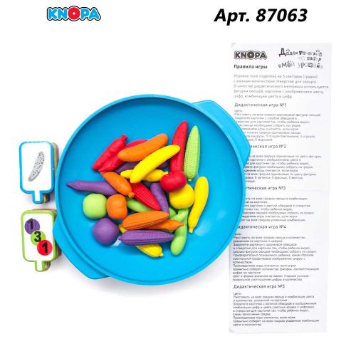 Дидактический набор «Мой урожай» в игровой форме поможет освоить малышам счёт, цифры, названия овощей, а также различные логические комбинации из нескольких предметов. Набор предназначен для развивающих занятий с детьми и на начальном этапе предполагает участие взрослого, чтобы объяснить ребёнку условия игры и познакомить с окружающим миром