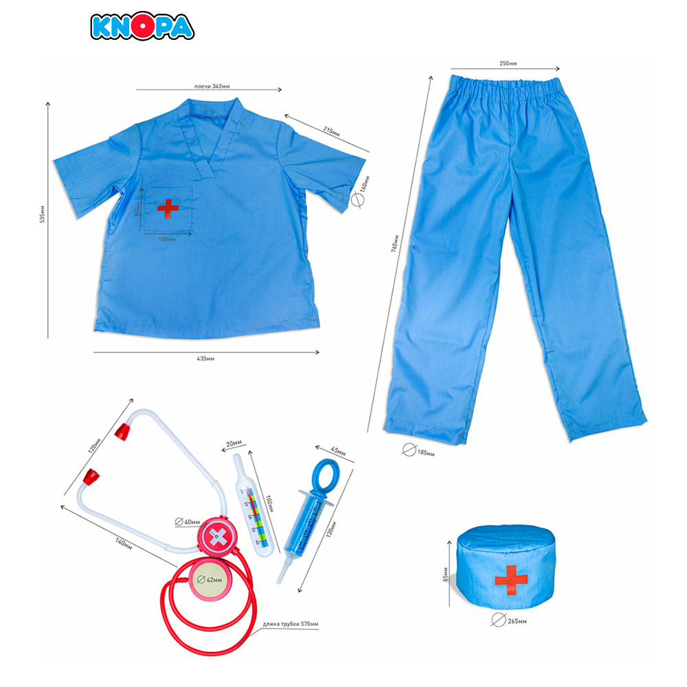 Набор Доктор подойдет для ролевых игр дома и в детском саду, и конечно для различных театральных постановок. Подойдет как карнавальный костюм. В наборе халат с воротником и карманом, отделан декоративным красным крестом. Неотъемлемой частью гардероба настоящего доктора является также колпак, украшенный красным крестом и брюки. Костюм универсальный и подходит одинаково как для мальчиков, так и для девочек. В наборе так же необходимые атрибуты врача - это фонендоскоп, градусник и шприц.