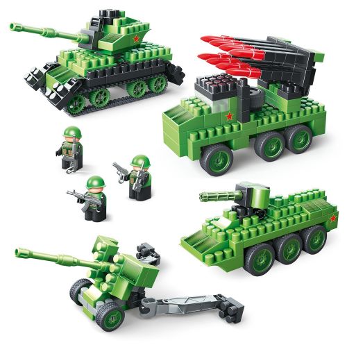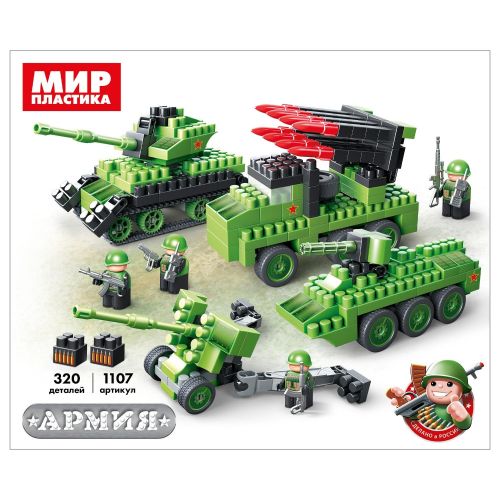 Конструктор "Армия". "Набор с танком, БТР, РСЗО и гаубицей."
