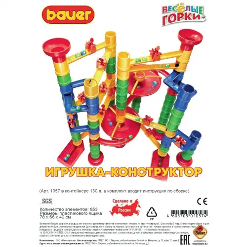 Конструктор Bauer "Веселые горки" (в контейнере 130 л, 15 инструкций) количество элементов: 953, , методическое пособие 1 шт, флешка с видео уроками - 1 шт.