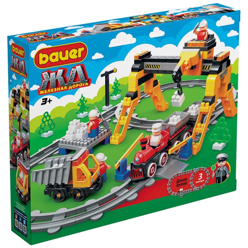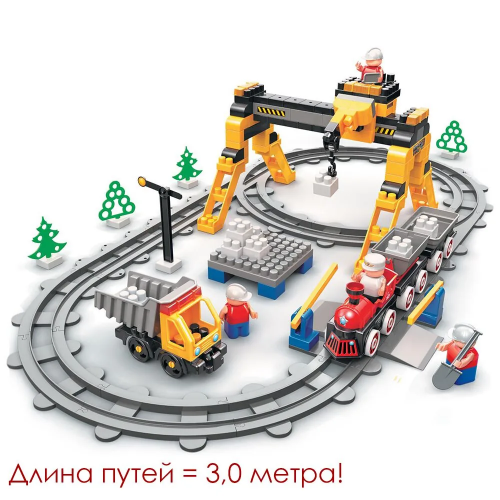 Конструктор "Железная дорога" "Грузовой поезд и контейнер на руднике Блокмена" 205 деталей, длина путей 3 м