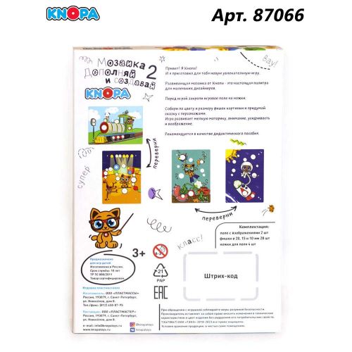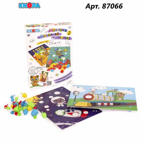 Развивающая мозаика от Кнопы – прекрасный тренажер для развития мелкой моторики, внимания, усидчивости, воображения, креативного мышления у детей младшего дошкольного возраста. В состав набора входят 2 поля с картинками и 28 цветных фишек разного размера. Рекомендуется в качестве дидактического пособия.