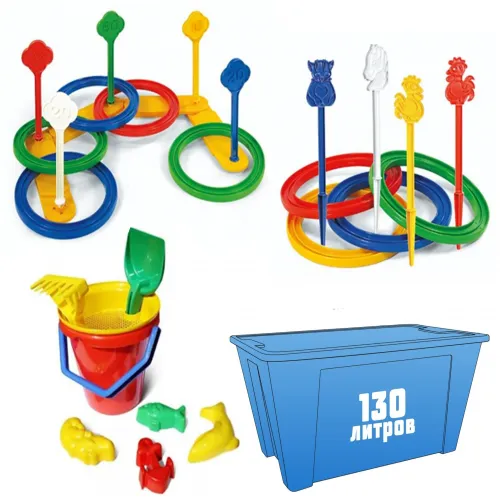 Набор для активных игр на группу из 15 человек: кольцебросы и наборы для песочницы. Всего 325 элементов
