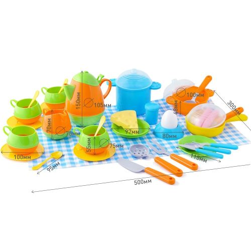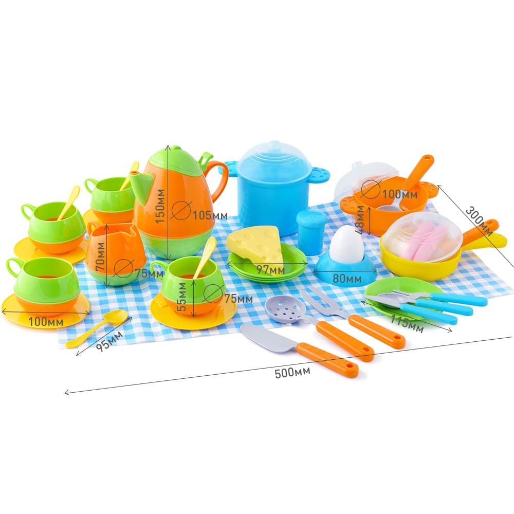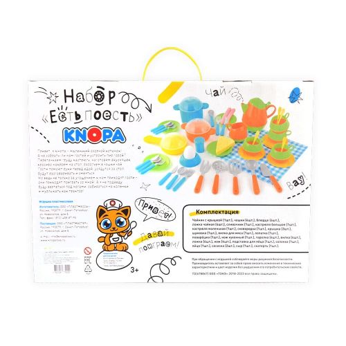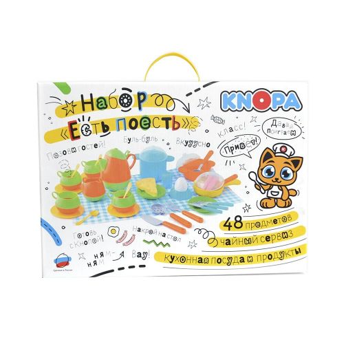 В одном наборе собрана вся кухонная утварь вместе с продуктами! Можно приготовить обед для кукол в кастрюлях и сковороде, орудуя лопаткой, шумовкой или поварёшкой. А потом сервировать стол и выложить продукты. Настоящий подарок для кукольного пира, который может устроить маленький хозяин или хозяйка. Набор посуды «Есть поесть» KNOPA включает в себя 48 предметов. Красивая упаковка и яркий дизайн посуды не оставят равнодушными ни одного ребенка. Посуда выполнена из безопасного пищевого пластика и имеет все необходимые сертификаты.