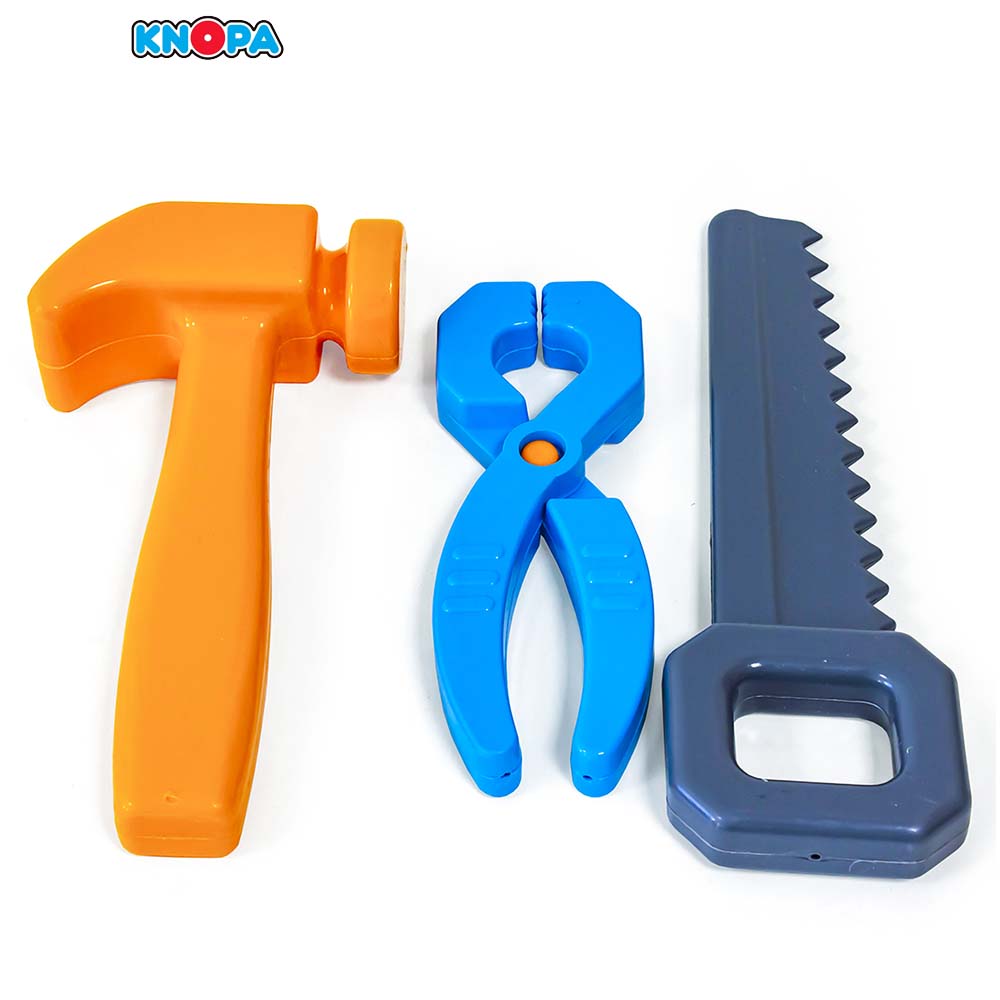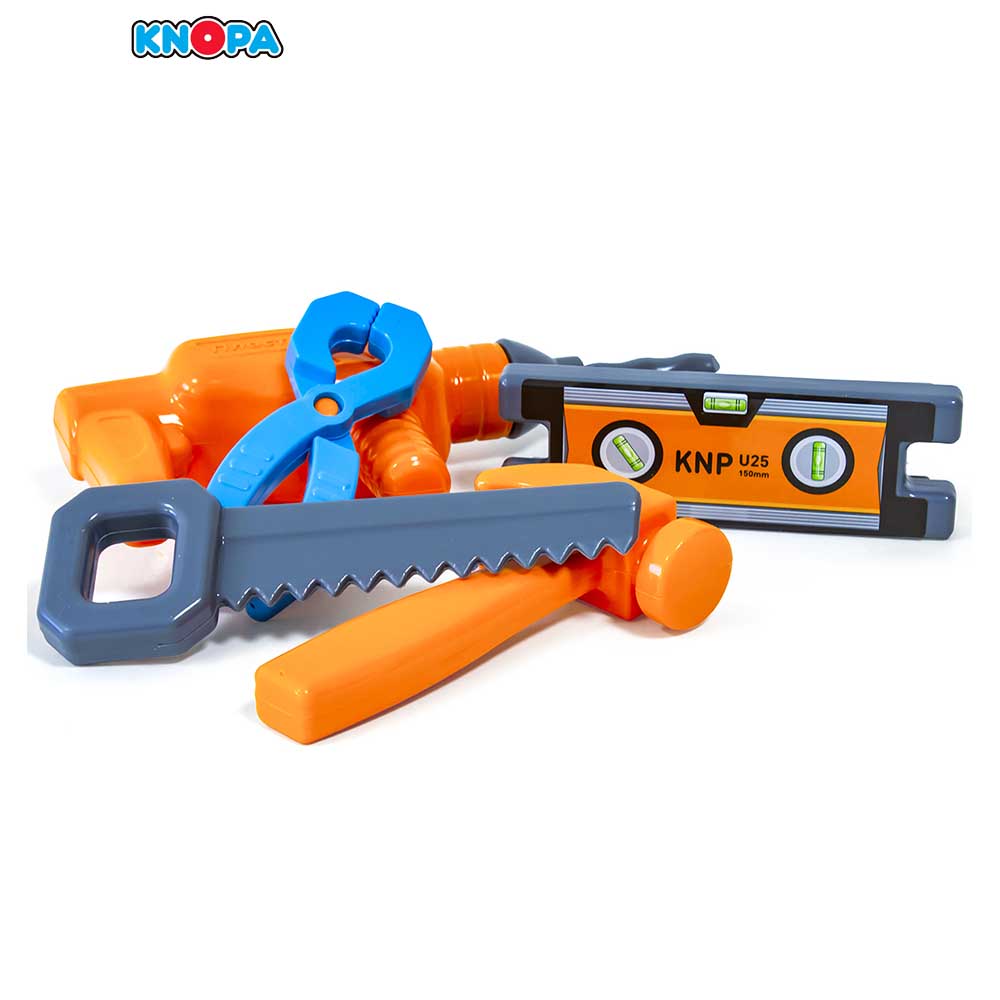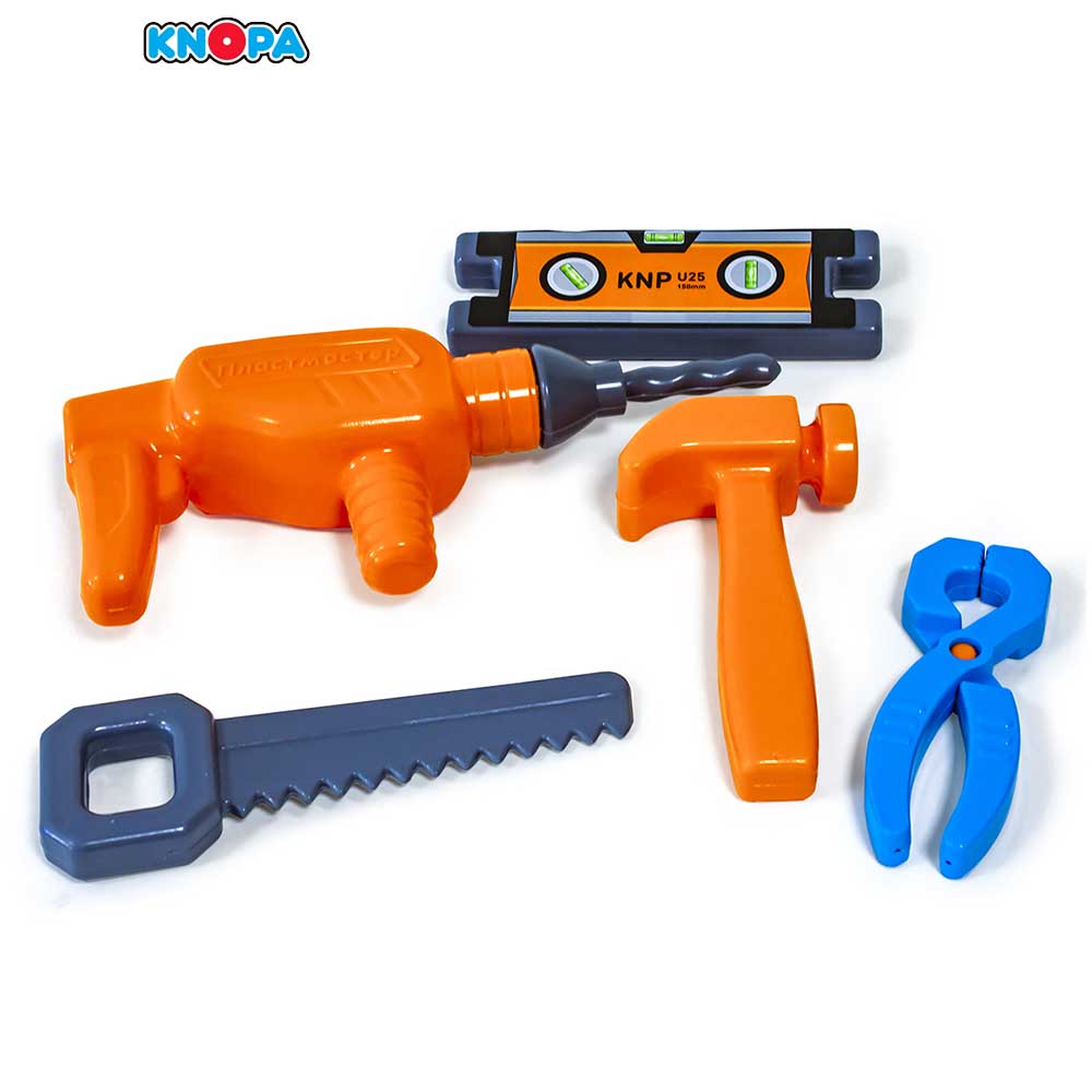 Набор инструментов "Все починим" поможет с ранних лет приучить ребенка к работе с инструментом и поспособствует воспитанию в нем настоящего мужчины в будущем. Яркие инструменты будут не только радовать вашего малыша, а также помогут в развитии визуального и слухового восприятия, мелкой моторики, координации движений, развитии воображения и фантазии, трудолюбия, навыков мастерства и конструирования. Набор станет прекрасным подарком для юного мастера.Все предметы изготовлены из ударопрочного и высококачественного пластика.