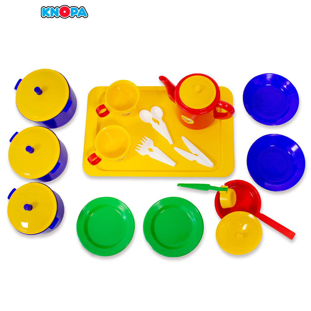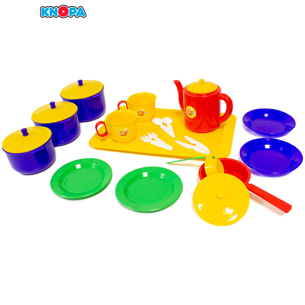 Набор посуды «Хозяюшка (большой набор)» точно понравится вашей дочке. Ведь в нем есть все те приборы и приспособления для готовки, которые ей понадобятся во время приготовления еды для своих куколок. Здесь и кастрюльки разной величины, и сковороды, и тарелки. Всего 21 предмет для увлекательной игры!