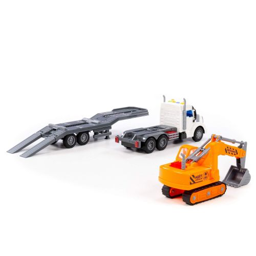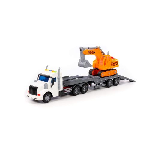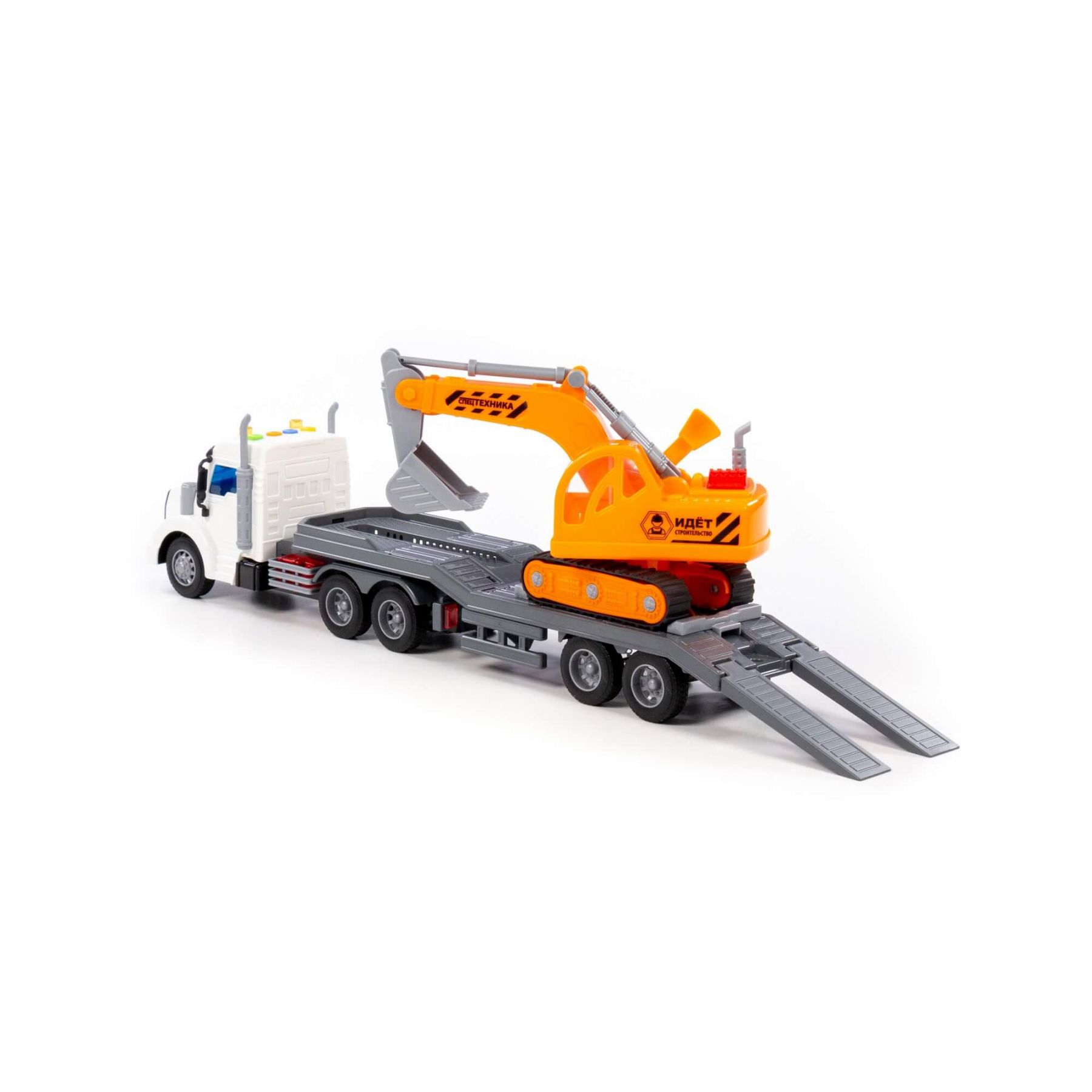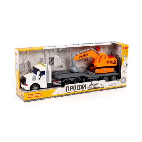 "Профи", автомобиль-трейлер инерционный (со светом и звуком) + гусеничный экскаватор (в коробке)