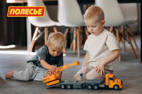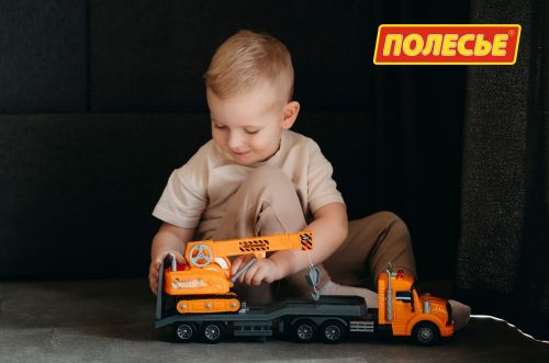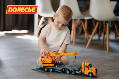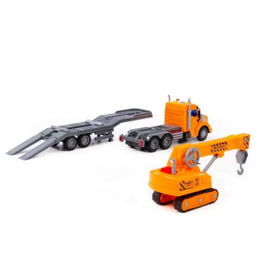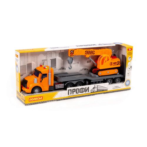"Профи", автомобиль-трейлер инерционный (со светом и звуком) + гусеничный кран (в коробке)